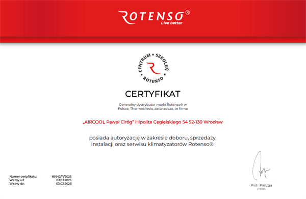 Aircool istnieje na rynku od 2024 roku i działa w branży klimatyzacja - usługi. Dzięki naszemu doświadczeniu mają Państwo gwarancję, że perfekcyjnie wykonamy powierzone nam zadania. Obszar naszego działania obejmuje województwo dolnośląskie, a siedziba naszej firmy mieści się w mieście Wrocław. Serdecznie zapraszamy do kontaktu. Pozostajemy do Państwa dyspozycji.