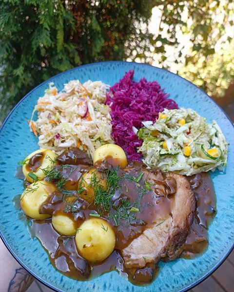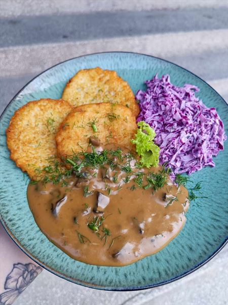 rozbudowane menu. Oferuje m.in. zupy, w tym zupy dnia oraz barszcz podawany z krokietem, uszkami albo czysty. Serwowane są też dania obiadowe, czyli mięsa albo ryby z ziemniakami lub frytkami oraz z surówkami. Goście restauracji mogą skosztować żeberek, pieczeni wieprzowej i schabu po góralsku. Podawane są też kotlety szwajcarskie z serem, bitki, panierowane filety drobiowe i polędwiczki. Zwolennicy zdrowego odżywiania mogą zamówić grillowanego kurczaka oraz ryby: pstrąga, mintaja i dorsza. W menu znaleźć można również wątróbkę, devolaya oraz naleśniki, pierogi i kluski leniwe. Kuchnia przygotowuje ponadto pizze i kubełki chrupiącego kurczaka z frytkami.
