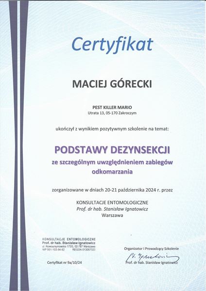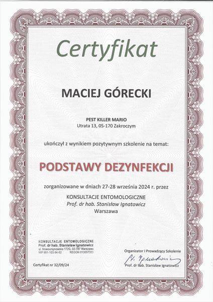 Pest Killer Mario to firma, która stawia sobie za cel zapewnienie bezpieczeństwa i higieny w każdym otoczeniu. Od momentu powstania w 2023 roku, założyciel Mariusz Biernacki kieruje naszą firmą na drodze do perfekcji w branży dezynfekcji, dezynsekcji oraz deratyzacji. Nasza działalność obejmuje obszar całej Polski, a nasze działania skupiają się na kompleksowym zwalczaniu wszelkich zagrożeń wynikających z obecności szkodników oraz mikroorganizmów chorobotwórczych.